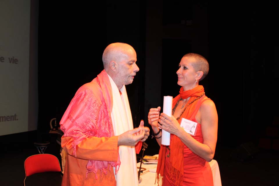 Daniel Pineault LocanandA et Matreyananda Kiratarjuniya Intro Dr Tiitaming Prix Sarasvati Kioske Purushananda Benevoles Dr Tiitaming Nomination Padma Daniel et Matreyananda LocanA et Antoinette Recompense Conferencier