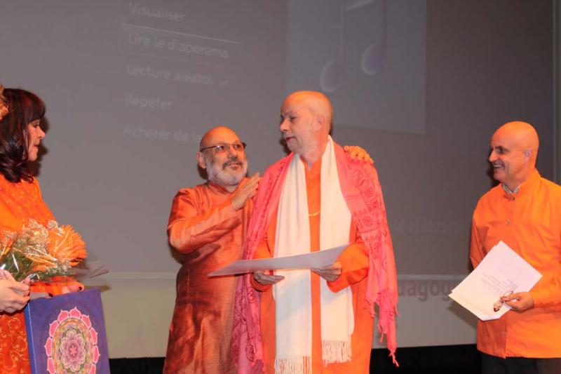 Daniel Pineault LocanandA et Matreyananda Kiratarjuniya Intro Dr Tiitaming Prix Sarasvati Kioske Purushananda Benevoles Dr Tiitaming Nomination Padma Daniel et Matreyananda LocanA et Antoinette Recompense Conferencier