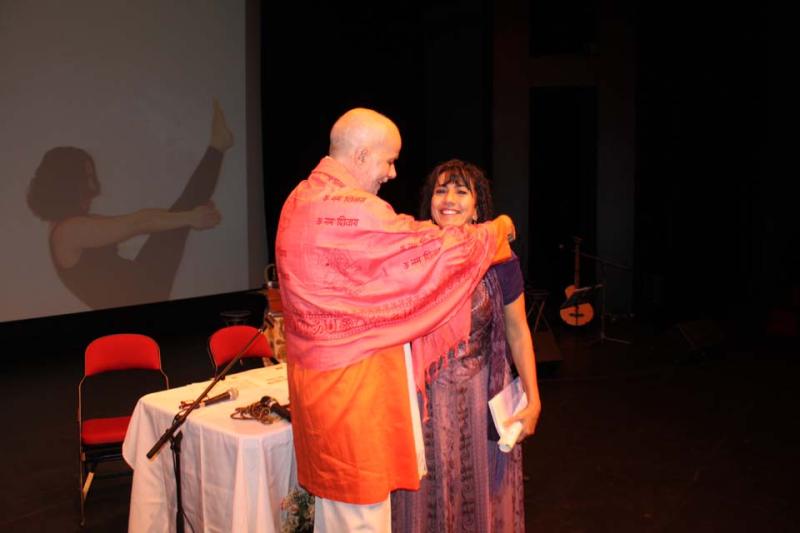 Daniel Pineault LocanandA et Matreyananda Kiratarjuniya Intro Dr Tiitaming Prix Sarasvati Kioske Purushananda Benevoles Dr Tiitaming Nomination Padma Daniel et Matreyananda LocanA et Antoinette Recompense Conferencier