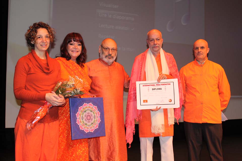 Daniel Pineault LocanandA et Matreyananda Kiratarjuniya Intro Dr Tiitaming Prix Sarasvati Kioske Purushananda Benevoles Dr Tiitaming Nomination Padma Daniel et Matreyananda LocanA et Antoinette Recompense Conferencier